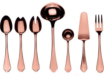 Mepra re-interpreted the Neo-Baroque style to create a collection of elegant and refined, yet modern and balanced shapes in the Dolce Vita Vintage Collection. The pewter finishings add a stylish distressed and elegant look to each piece that will surely enhance your table. Experience the artistry of Italian craftsmanship with our flatware collection, expertly crafted from premium 18/10 stainless steel. With an impressive 4.0mm thickness, each piece combines durability with ergonomic design for a comfortable grip. The knives, featuring double serration for lasting sharpness, perfectly balance practicality and elegance, and the dishwasher-safe quality ensures effortless maintenance. Elevate your dining moments with this impeccable blend of quality and style.