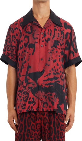 Dolce&Gabbana offers a literal reinterpretation of their signature leopard print on this silk camp shirt that's part of the label's 'Hot Animalier' collection. A contrast collar and cuffs complete the look with panache.