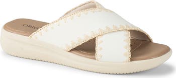 Whipstitched raffia trim enhances the sunny-day vibe of an airy slide sandal constructed with lightweight cushioning and a flexible grip sole.