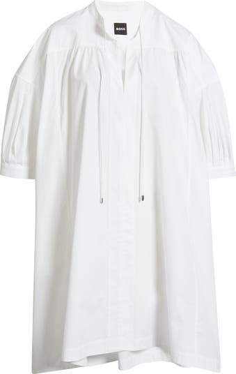 A rounded hem that dips a bit lower in back enhances the soft movement of this flowy dress cut from fine, smooth cotton that makes the most of the easy fit.