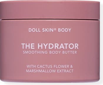 Doll Skin Body™️ The Hydrator Smoothing Body Butter with Cactus Flower & Marshmallow Extract is a decadent, luxurious, cleanly formulated body butter that’s whipped to creamy perfection to help quench thirsty skin while improving the look of dry, fine lines and skin texture. This nutrient dense and richly hydrating body butter is fortified with skin-loving ingredients including Cactus Flower & Lipids to help hydrate and moisturize the skin, Marshmallow Extract & Peptides leaves your skin feeling soft and supple, and Guarana & Coconut Oil visibly smoothes, brightens, and firms the look of skin.