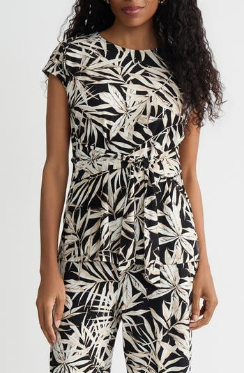 Attached front ties cinch the silhouette of this desk-to-dinner top framed by dolman sleeves.