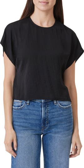 A lightweight, drapey crepe fabric elevates this versatile dolman-sleeve top complete with a modern boxy fit.