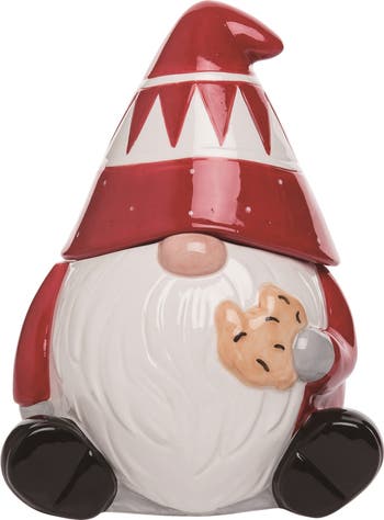 - Festively designed 10.25" Multicolor Christmas Gnome Cookie Treat Jar made of durable, foodsafe dolomite, perfect for adding a whimsical touch to your holiday tabletop decor. Easy to care for and maintain, as this festive gnome cookie jar is dishwasher safe and food safe, making it perfect for holiday treats. Delightful 10.25" multicolor Christmas gnome cookie treat jar, perfect for festive gift giving and seasonal decor, made of foodsafe dolomite and dishwasher safe for easy cleaning. Gnomes themed piece in a splash of color.