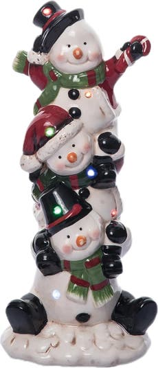 - Charming Dolomite Light Up Stacked Snowmen figurine adds a festive touch to your holiday decor. Multicolored design features delightful music for a cheerful ambiance during Christmas celebrations Perfect for tabletop display, this ceramic decoration is ideal for indoor use and holiday gatherings. Makes a thoughtful gift for hostess gifts or holiday celebrations, easy to care for with spot or wipe clean instructions.