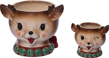 - Set of 2 vintage reindeer snack bowls perfect for holiday gatherings and festive occasions. Made from durable ceramic with a charming multicolored design to enhance your Christmas tabletop decor. Ideal for serving snacks or as decorative pieces for indoor use during the holiday season Easy to maintain with simple spot or wipe clean care instructions, making them great for gift giving or hostess gifts.