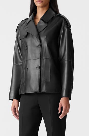Commanding epaulets and tailored seams add classic touches to a sleek double-breasted coat made from supple lambskin leather and is fully lined (including sleeves), so it's easy to slip on and off.