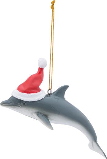 Resin dolphin ornament with Santa hat has a light gloss finish and measures 4 x 0.5 x 4. 89-4030