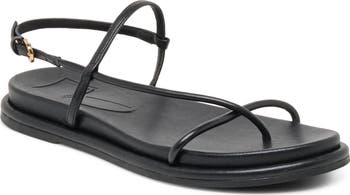 Slim leather straps and polished buckle hardware make this sandal a contemporary-chic standout.
