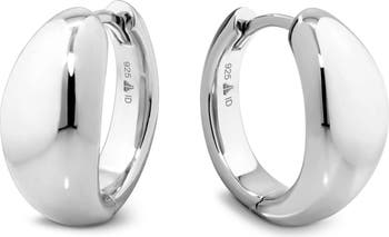 Dome Hoop Earrings in Rhodium Plated Sterling Silver