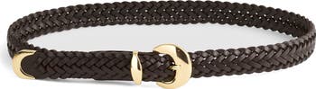 Crafted from woven leather with a three-piece metal hardware design, this wide belt features a domed buckle. Pair it with your favorite jeans or trousers for an effortlessly cool feel.