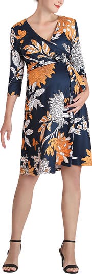 Dona Floral Faux Wrap Maternity Nursing Dress