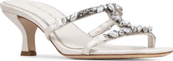 Sparkling crystals highlight the strappy design of a glamorous sandal complete with comfort-enhancing memory foam cushioning.