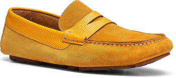 Memory foam cushioning and a flexible rubber driving sole offer all-day comfort in this soft suede penny loafer with reptile-embossed trim.