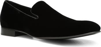 A streamlined upper in soft velvet elevates this minimalist smoking slipper lined with cushy memory foam and leather for effortless comfort.