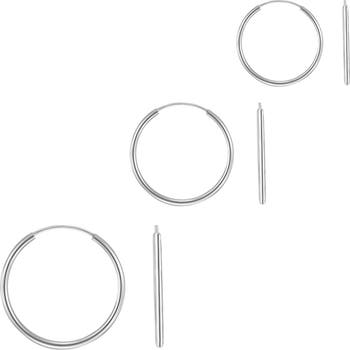 Experience effortless style with The "Endless Style" Set of 3 Sterling Silver Hoop Earrings. Made of high-quality sterling silver, these hoops are stamped with 925 for authenticity. Available in 3 sizes (10, 12, and 14mm), they are versatile for any occasion. Plus, they are lead and nickel-free for worry-free wear. Elevate your accessory game with this must-have set!
