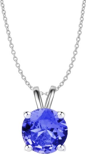 Fashion a timeless look with this 925 Sterling Silver Round Cut Created Necklace. Crafted with .925 Sterling Silver, this necklace features 8MM Lab Created Tanzanite Stones and an 18" Cable Chain with a Spring Ring Closure. Lead and Nickel free, this necklace is perfect for an everyday look.