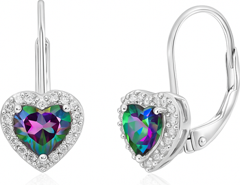 These exquisite Sterling Silver Leverback Mystic Heart Earrings showcase authentic 925-stamped craftsmanship with captivating Created Mystic stones set within an elegant crystal halo design. The heart silhouette radiates timeless romance, while the shimmering halo amplifies the stone's natural brilliance. Leverback closures provide secure, comfortable wear throughout the day, and the hypoallergenic sterling silver construction ensures these earrings are gentle on sensitive ears. Perfect for both special occasions and refined everyday elegance, this pair brings sophisticated sparkle to any collection.