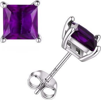 Enhance your style with these elegant Solid 925 Sterling Silver Purple Stud Earrings. Made with high-quality sterling silver, these earrings feature a stunning 5x5mm Purple stone. Lead and nickel free, with a secure butterfly closure. Elevate your look with these timeless and versatile earrings.
