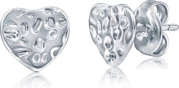 These Textured Heart Stud Earrings are crafted from 14K white gold plated brass and feature 8MM Heart for a timeless and elegant look. Lead and nickel-free, they make an ideal choice for everyday wear.