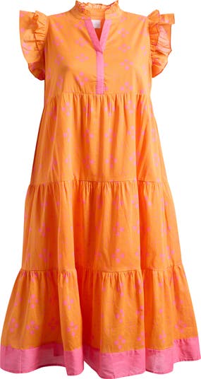 A tiered skirt ensures sashaying and twirling become second-nature in a cotton midi dress covered in a unique dot print.