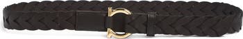 Inspired by the wrought‑iron gate of Ferragamo’s original Florentine headquarters, a signature Gancio hook gleams against this beautifully woven Italian-calfskin belt.