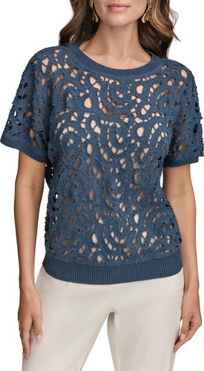 Casual happily meets polished in this airy crochet sweater that brings a nonchalantly refined personality to any look you build with it.