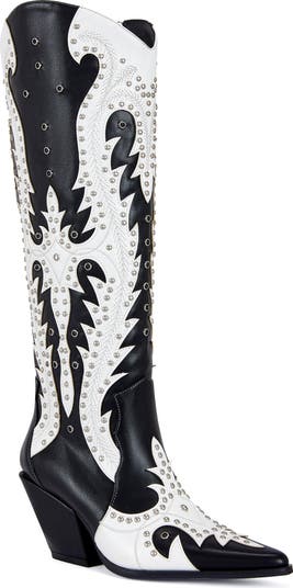 Polished studs highlight the intricate Western design of this knee-high boot.