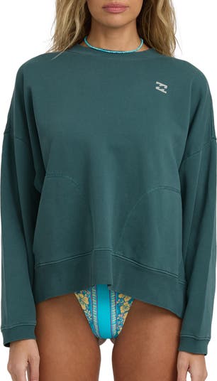 Logo graphics mark the chest and back of this slouchy crewneck sweatshirt designed with dropped shoulders and ribbed trim.