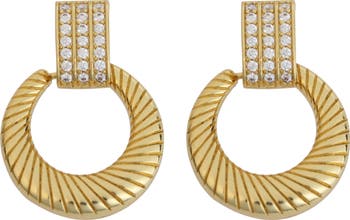 Sunny 14-karat gold plates these '90s-inspired door knocker frontal hoop earrings glinting with pavé crystals.