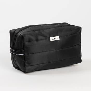 BRING ON THE COTTON PUFFS AND MUCH MORE. This durable, wipeable, light-as-a-cotton-puff toiletry bag has plenty of space for all your beauty essentials on the go. A full length zip compartment down the middle gives you three different areas to organize all your stuff. Grab and go with the side handle. Easy peasy and oh-so cozy.