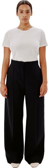 Our instant-classic wide leg pant in seasonless, double-faced wool. Cut in a universally flattering, easy-to-wear shape, its supple knitted texture moves effortlessly along the body, maintaining clean lines. Pair with the Doppio Jacket to complete the ensemble, or with the T-shirt for an everyday look. We have visited our wool-supplying farms to ensure that their sheep are raised and sheared in exemplary conditions, free of the cruel practice of mulesing. The fabric is processed and finished in an Italian facility that runs on 100% renewable energy. The addition of elastane helps to improve strength and performance, helping to extend the garment's lifetime.