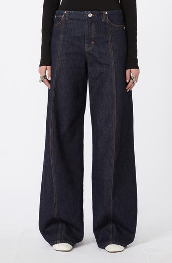 Max Mara's experimental counterpart tilts denim into tailored territory with these nonstretch wide-leg jeans, where contrast topstitching mimics the pressed creases of sartorial trousers. Silvery S-shaped rivets authenticate the look as signature SPORTMAX.