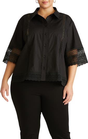 Intricate lace insets are the highlight of this elegant button-up top made from cotton poplin.