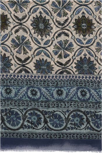 Scarf adorned with a pattern of rosettes, crafted in a soft blend of modal and silk.