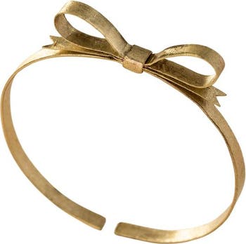 Graceful and versatile, this bracelet features a sleek bronze bow ribbon that rests horizontally across the wrist, its ends tipped with distinctive triangular cut-outs. A subtle back opening allows for easy adjustability, making it both comfortable and stylish. A protective lacquer ensures lasting shine, making this piece as durable as it is charming. A Exclusive handcrafted in Chile by the artisans of Beas y Tapia Ltda, a small family business that directly engages with craftspeople, offering fair prices that honor workmanship and expertise while delivering certified quality products to customers. Coordinates with 8703210 and 8703230.