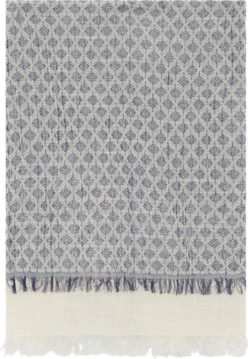 Airy jacquard drape skims the shoulders, soft fringe edge lending relaxed glamour for daywear and travel.