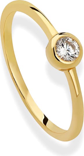Stunning in its simplicity, this slender ring is crafted from 14-karat gold vermeil and accented with a solitaire, bezel-set cubic zirconia that adds just the right amount of shine to any finger.