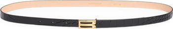 The brand's gilded 'B' buckle brings jewelry-like embellishment to this Italian-crafted belt in glossy croc-embossed calfskin.