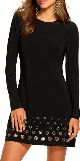 Dorinda Rivet Detail Long Sleeve Minidress