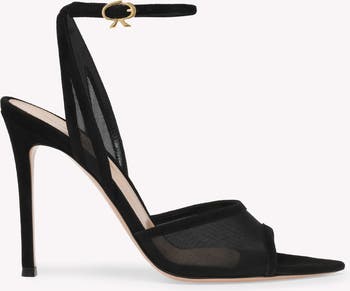 Crafted from see-through organza silk and suede, Sienna is a pointed-toe sandal with a 105mm stiletto heel. The ankle strap is enriched with the signature Ribbon buckle. Handmade in Italy.
