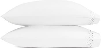 A pair of crisp pillowcases made from Egyptian cotton percale is set off with ombré rows of dot embroidery.