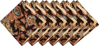 These 20" Dorothy Autumnal Brown Quilted Cotton Paisley Floral Accents Cloth Napkins come in a set of six and are designed to elevate any table setting. With their stunning paisley floral pattern in warm autumnal tones, they add a refined touch to any meal, whether it's a casual gathering or a formal occasion. The napkins are crafted from soft, quilted cotton fabric, ensuring both comfort and durability for repeated use. Ideal for all seasons, they complement a variety of table settings, especially for fall harvests, Thanksgiving, and summer outdoor gatherings. Whether you're hosting a dinner party or simply enjoying a meal at home, these napkins make an inviting addition to your table. They are easy to care for, as they are machine washable, allowing for convenient cleaning after each use. These napkins are a great way to impress guests and can be paired with other coordinating tableware for a complete dining experience. A versatile and stylish choice for every dining occasion.