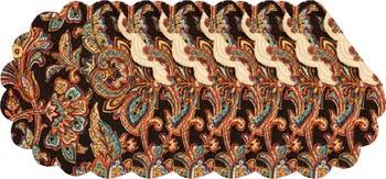 Dorothy Autumnal Brown Quilted Scalloped Paisley Floral Accents Placemats Set of 6, 17"