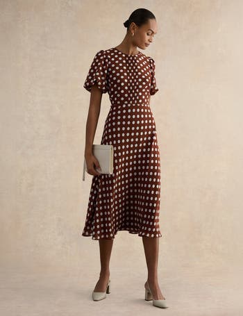 Pintucked midi that skims the waist and drapes softly, offering playful pattern and graceful movement.
