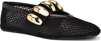 Polished hardware highlights the mary jane strap of this airy mesh flat complete with an impeccable round toe.