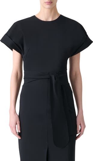 Cuffed dolman sleeves elegantly flare the silhouette from the shoulders of this unexpectedly statement-making top styled with a signature dot cutout at the back.