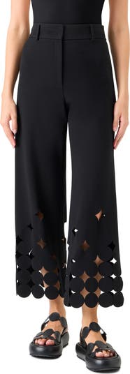 Intricately carved cutouts play off the Swiss label's signature dot motif on a softly flared pants topped with a flat front.
