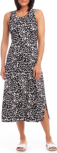 This simple and elegant dot-print midi dress is cut from stretchy jersey in a figure-skimming sleeveless fit with an airy side slit for easy movement.