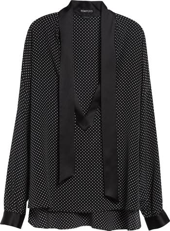 Dotted silk crepe is paired with the sheen of satin on this flowy top slit with a plunging neckline and draped with matching ties edged in delicate pickstitching.